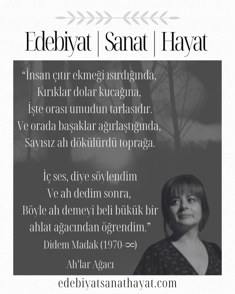 Şair Didem Madak’ı aramızdan ayrılışının 13. yılında ruhlarımıza dokunan, unutulmaz eseri Ah’lar Ağacı şiiriyle saygıyla anıyoruz…