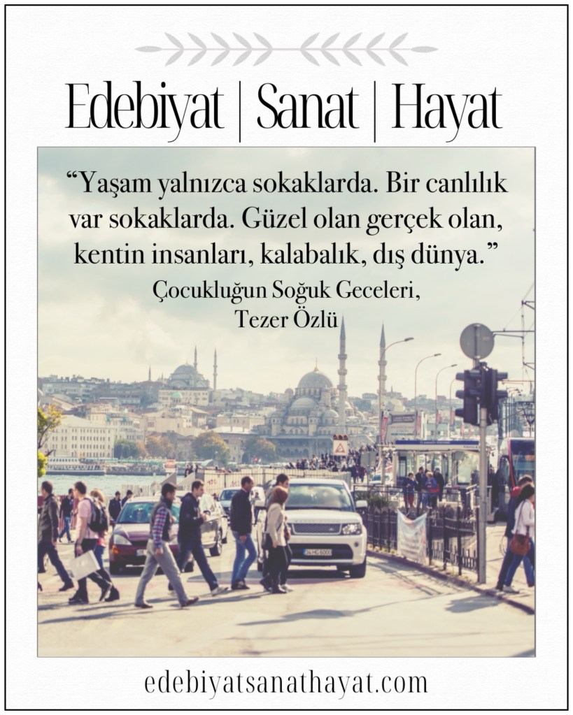 “Yaşam yalnızca sokaklarda. Bir canlılık var sokaklarda. Güzel olan gerçek olan, kentin insanları, kalabalık, dış dünya.”