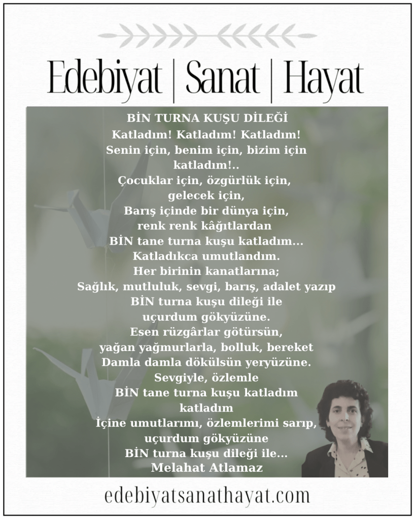 Şair Melahat Atlamaz; kitabına adını veren Bin Turna Kuşu Dileği şiiri ve şiirinin hikâyesiyle Edebiyat I Sanat I Hayat Dergisi’nde…