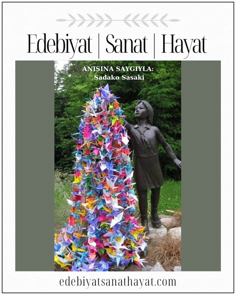 5 Mayıs 1957’de “Atom Bombası Çocukları” adına bir anıt dikilir Hiroşima’ya. Anıtın tepesinde omzuna turna kuşu konmuş bir kız çocuğunun heykeli vardır. Sadako Sasaki’dir heykeldeki çocuk…. 646. turna kuşundan sonra gözlerini kapayan Sadako’nun etrafındaki rüzgâr, kâğıttan yapılan binlerce turna kuşunu uçurur yaz kış. On binlerce küçük el, savaşlar olmasın, çocuklar ölmesin diye Sadako’nun bıraktığı yerden turna kuşu yapmayı hâlâ sürdürmektedir.