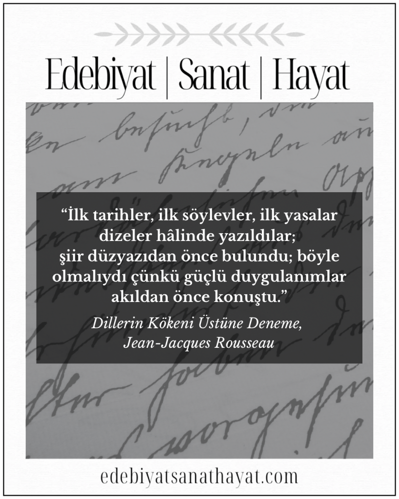 “İlk tarihler, ilk söylevler, ilk yasalar dizeler hâlinde yazıldılar; şiir düzyazıdan önce bulundu; böyle olmalıydı çünkü güçlü duygulanımlar akıldan önce konuştu.” (Sayfa 58)