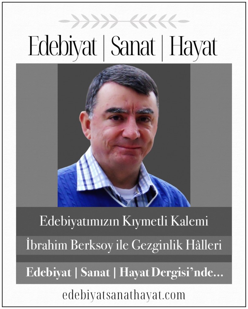 Değerli yazar İbrahim Berksoy, Gezginlik Hâlleri köşesinde yayımlanan yazılarıyla Edebiyat I Sanat I Hayat Dergisi’nde okurlarıyla buluşuyor…