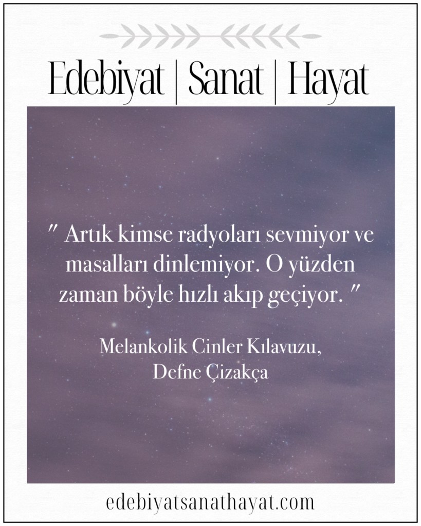 “Artık kimse radyoları sevmiyor ve masalları dinlemiyor. O yüzden zaman böyle hızlı akıp geçiyor.” (Sayfa: 17)