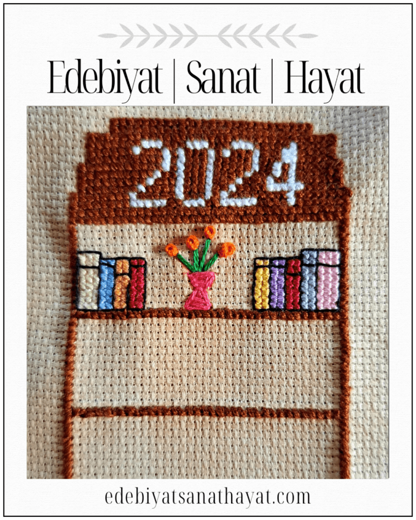 Bir kitabı okurken kahramanlarla birlikte onların dünyasında yaşadığımı hissediyorum. Derinden etkilendiğim kitaplar bitince içimde oluşan boşluk hissini tekrar okuyarak doldurabiliyorum. Klasik, biyografi, roman, manga gibi farklı alanlarda okumalar yaparak hayal gücümü canlı tutmayı, bu alanlarda bilgi sahibi olmayı seviyorum. Kitaplarda anlatılan dünyaları ve kahramanları tanımak hayal gücümü geliştiriyor. Ufkumun genişleyişi nakış projelerime de yansıyor. Bazen bir manzarada bazen bir kitap ayracında beliriyor. Tıpkı bu yıl, şu ana kadar okuduğum yirmi iki kitabın 2024 kitaplığımda yerini alması gibi…
