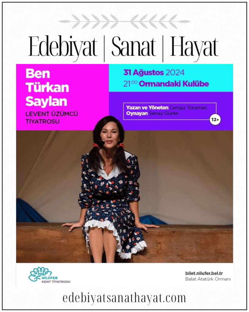 Fedakârlığın, aydınlığın, çağdaşlığın, cumhuriyet ilkelerine bağlılığın önemli isimlerinden Türkan Saylan’ın hayatının ele alındığı ve Cengiz Toraman’ın yazıp yönettiği “Ben Türkan Saylan”, Şenay Gürler’in incelikli ve içten yorumuyla 31 Ağustos saat: 21.00’da, Ormandaki Kulübe-Balat Atatürk Ormanı’nda seyirciyle buluşuyor.