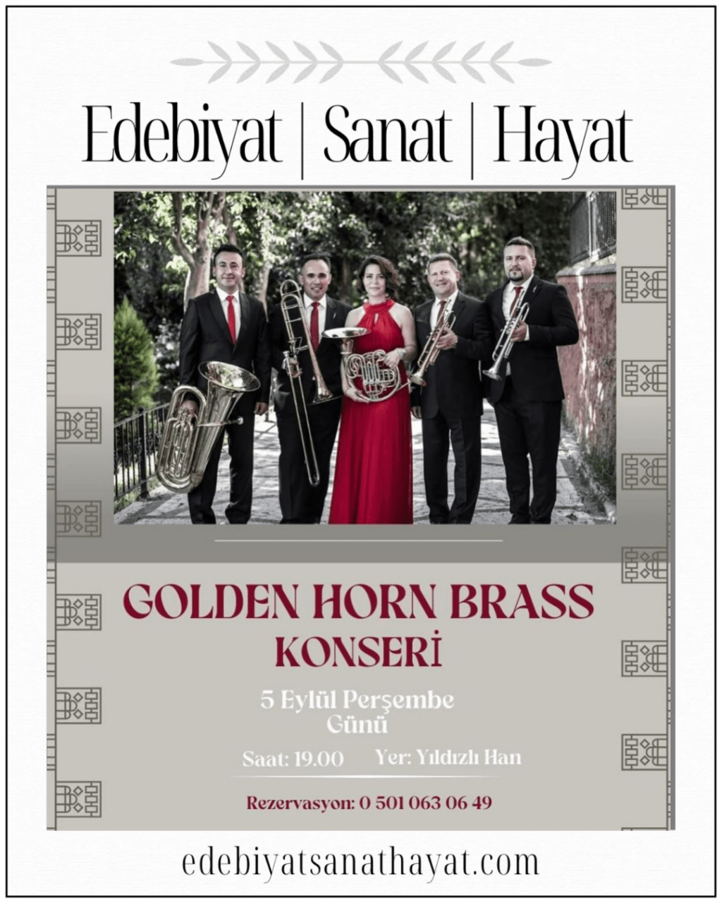 2004 yılında Begüm Gökmen tarafından kurulan Türkiye’nin ilk ve en uzun soluklu bakır nefesliler beşlisi Golden Horn Brass, Yıldızlı Han’da müzikseverlerle buluşacak.