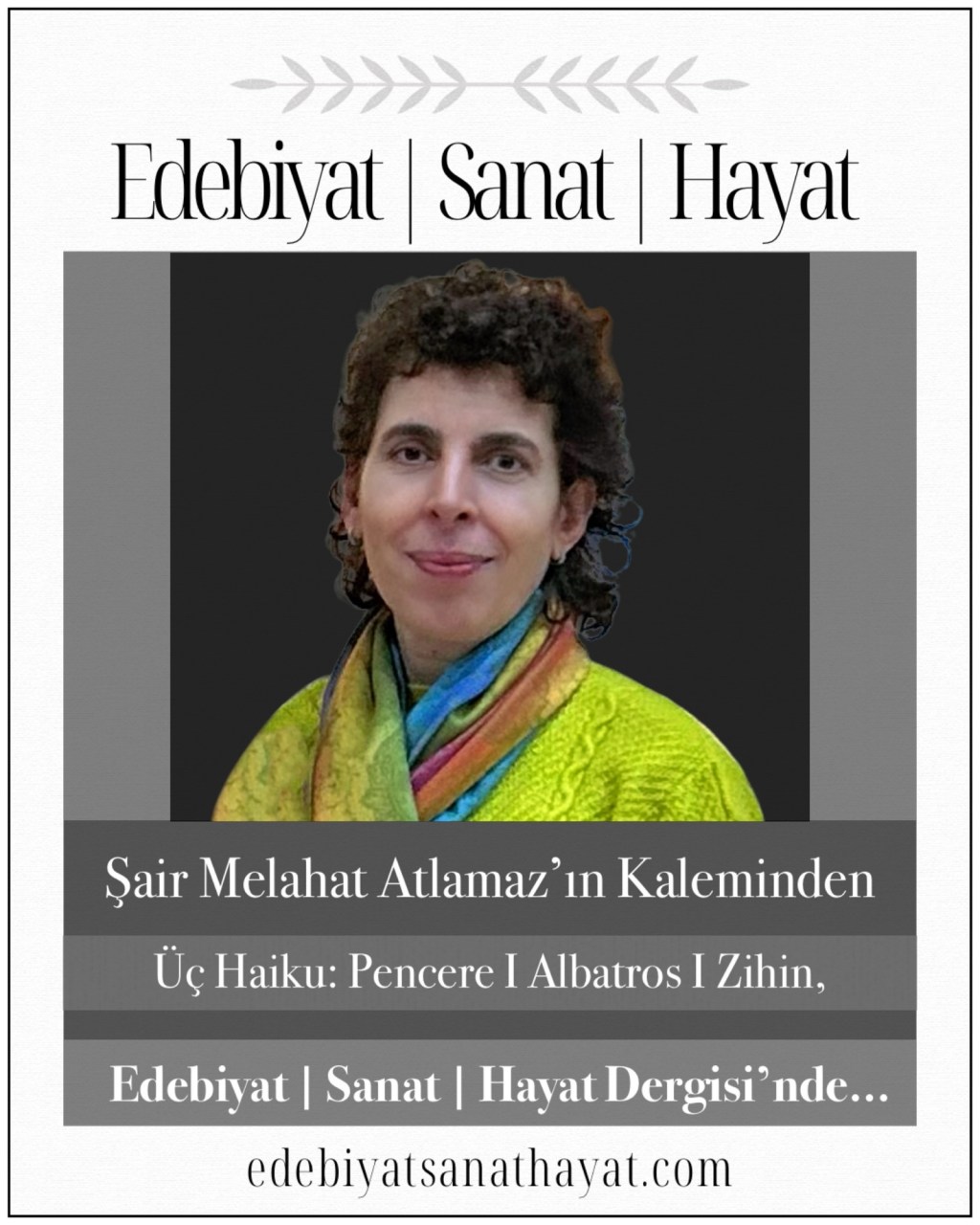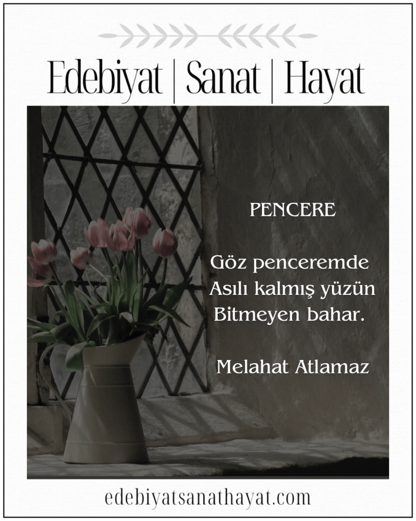 “Bin Turna Kuşu Dileği” kitabıyla tanınan, gezi yazıları ve öyküleri ilgiyle takip edilen değerli şair-yazar Melahat Atlamaz, Pencere, Albatros, Zihin adlı haikularıyla Edebiyat I Sanat I Hayat Dergisi’nde…