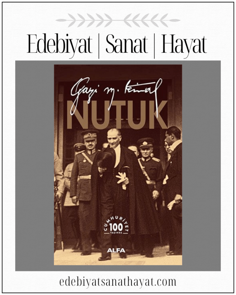 Mustafa Kemal Atatürk’ün deyişiyle ‘’ büyük bir milletin istiklalini nasıl kazandığını, ilim ve fennin en son esaslarına dayanan, milli ve asri bir devleti nasıl kurduğunu’’ anlattığı eseridir. Bu muhteşem başyapıtta Atatürk’ün Samsun’a çıkışından Cumhuriyeti kurmasına kadar pek çok önemli olay, ayrıntılı bir şekilde ele alınmıştır. Nutuk, yakın tarihi daha iyi anlayabilmek adına herkesin okuması gereken eserlerin başında geliyor.”