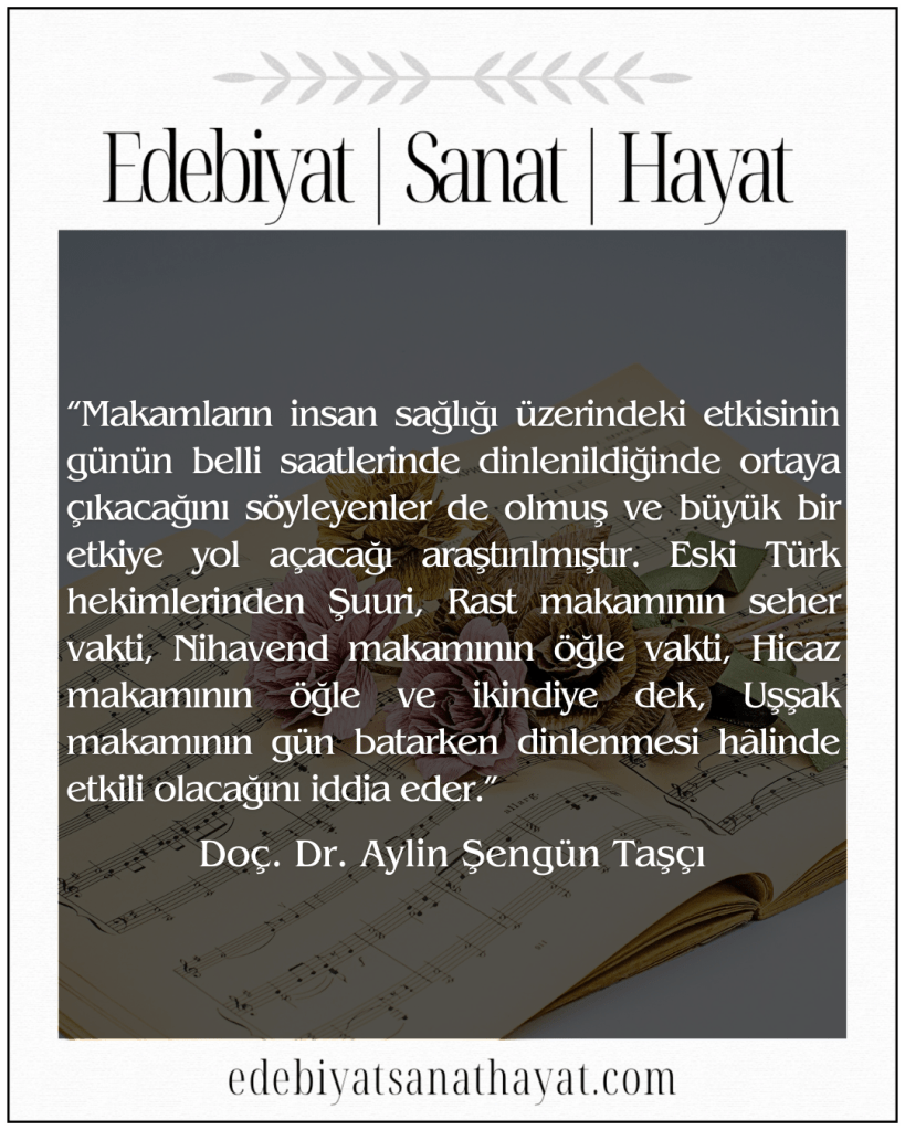 Şuuri’den insanın ruhsal ve fiziksel tedavisinde kullanılan makamların dinlenilmesi gereken vakitler