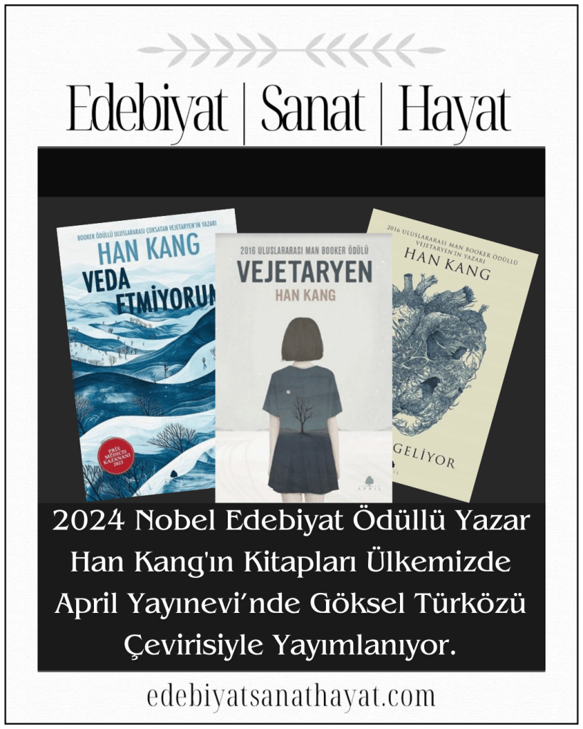 2024 Nobel Edebiyat ödüllü yazar Han Kang’ın kitapları, ülkemizde April Yayınevi’nde Göksel Türközü çevirisiyle yayımlanıyor.