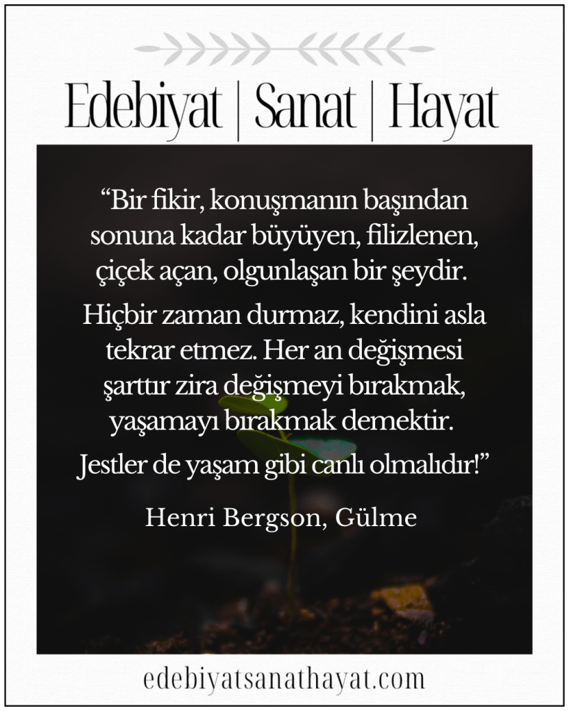 Kitap Hakkında: “Henri Bergson, Sezgicilik ekolünün Batı felsefesindeki temsilcisidir. Yaşamında büyük üne kavuştu, 1927 yılında Nobel Ödülü’nü aldı. Eserlerine olan ilgi İkinci Dünya Savaşı sonrasında azalmış olsa da geç 19. yüzyıl ve erken 20. yüzyıl felsefesindeki önemli konumunu muhafaza etmektedir. Kendisinden sonra gelen Gilles Deleuze, Jean-Paul Sartre ve Martin Heidegger gibi düşünürleri de derinden etkilemiştir. İlk kez 1900 yılında yayımlanan, gülme üzerine yazdığı denemelerini içeren bu eserinde gülmenin anlamını, gülmeye yol açan koşulları ve gülmenin toplumsal işlevlerini araştırmaktadır.”*