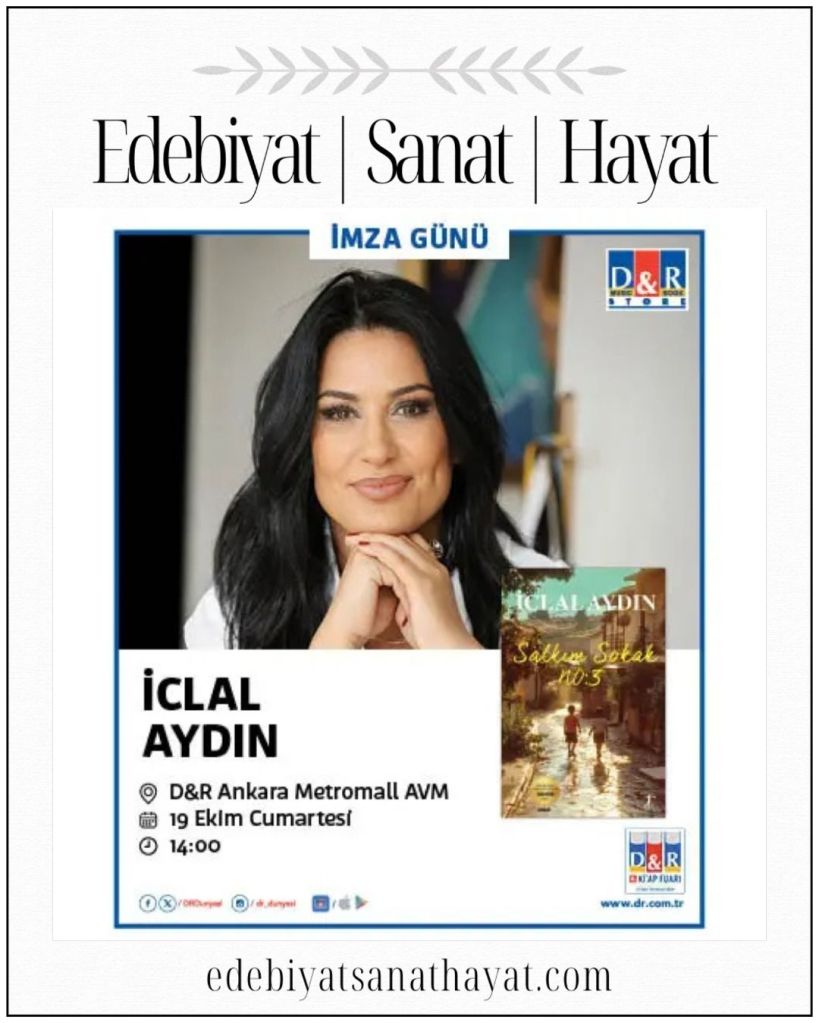 Kısa sürede çok okunan kitaplar arasında yerini bulan Salkım Sokak No:3 ve pek çok unutulmaz eserin yazarı İclal Aydın, okurlarıyla buluşmak üzere Ankara’ya geliyor.