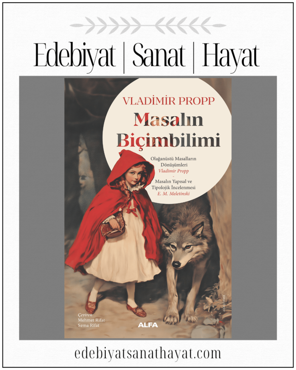 Kitap Hakkında: “Masalın Biçimbilimi adlı dünyaca ünlü bu yapıtıyla Vladimir Propp (1895-1970), olağanüstü masalların kaynaklandığı temel yapıyı ortaya çıkardı ve masal incelemeleri için bir çözümleme modeli oluşturdu. Bu kitap ayrıca yine Propp’un “Olağanüstü Masalların Dönüşümleri” adlı yazısını da içermektedir. Eklenen diğer yazı ise E. M. Meletinski’nin (1918-2005) “Masalın Yapısal ve Tipolojik İncelemesi”dir. Meletinski hem Propp’un masal çözümleme yöntemi açısından katkısını ve etkisini yorumluyor hem de dünyanın çeşitli ülkelerinde sürdürülen masal, mit araştırmaları alanındaki çalışmaları değerlendiriyor.