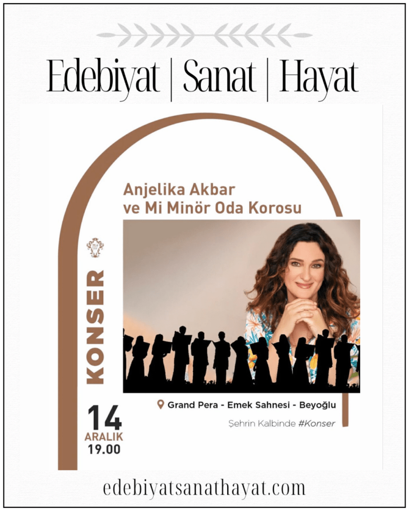 Besteci, Piyanist ve Yazar Dr. Anjelika Akbar ve Mi Minör Uluslararası Oda Müziği Korosu 14 Aralık 2024 tarihinde, Grand Pera Kültür Merkezi’nde Yılbaşı Konseri’nde buluşacaklar.