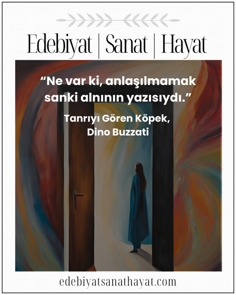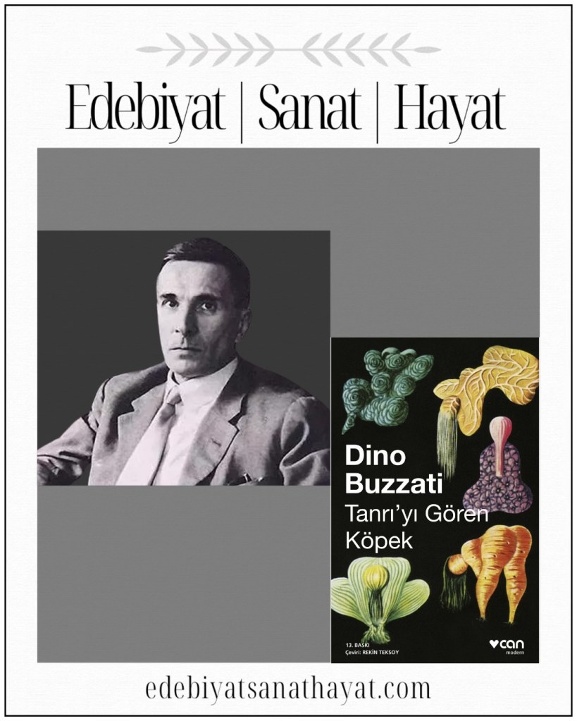 Kitap Hakkında: “Romancı, öykü ve oyun yazarı Dino Buzzati, kendine özgü taşlama ve mizah anlayışıyla çağdaş İtalyan edebiyatının en saygın yazarlarından biri. Edebiyat çizgisinin kökleri genellikle Edgar Allan Poe ve Franz Kafka’ya uzanan ama özellikle kısa öykülerinde tümüyle özgün bir fantastik dünya yaratmış olan Buzzati, sanayi toplumunun, günümüz insanı üstüne bir karabasan gibi çöreklenen baskılarını kimi zaman gerçeküstücü, yer yer olağandışı boyutlarda işliyor. Tatar Çölü adlı romanı ve Klinik Bir Vaka adlı oyunuyla büyük üne erişen Buzzati, en güzel öykülerini bir araya getiren Tanrı’yı Gören Köpek’te, çağdaş insanı sarmalayan gizemi aralamaya yöneliyor. İnsanlığı tüm zayıflıkları, tüm çelişkileriyle ele alan bu öyküler günümüzün yalnız insanını psikolojik derinliğiyle irdelemekle kalmıyor, tükenmeyen umutlarımızı da dile getiriyor.”*