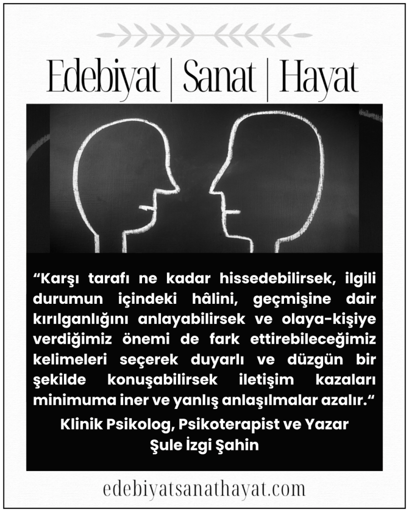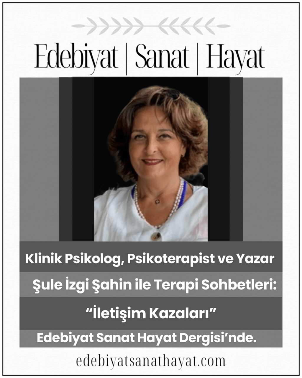 Psikolojik polisiye roman üçlemesi Kopmuş İp, Kocama Tuzak Kurdum, Kırmızı Kadifenin Sırrı eserleriyle tanınan, alanında benzersiz bir çalışma olan Romandrama’nın yazarı, ODTÜ Edebiyat Kulübünün kurucusu, Uzman Klinik Psikolog, Psikoterapist ve Yazar Şule İzgi Şahin, “İletişim Kazaları” köşe yazısıyla Edebiyat Sanat Hayat Dergisi’nde…