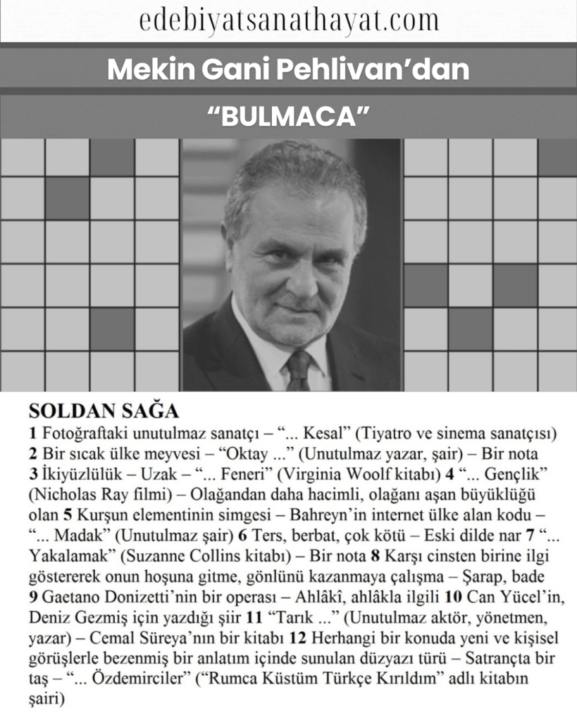 Usta Bulmaca Yazarı Mekin Gani Pehlivan, edebiyatın, sanatın, hayatın içinden eşsiz bulmacalarıyla Edebiyat Sanat Hayat Dergisi’nde.