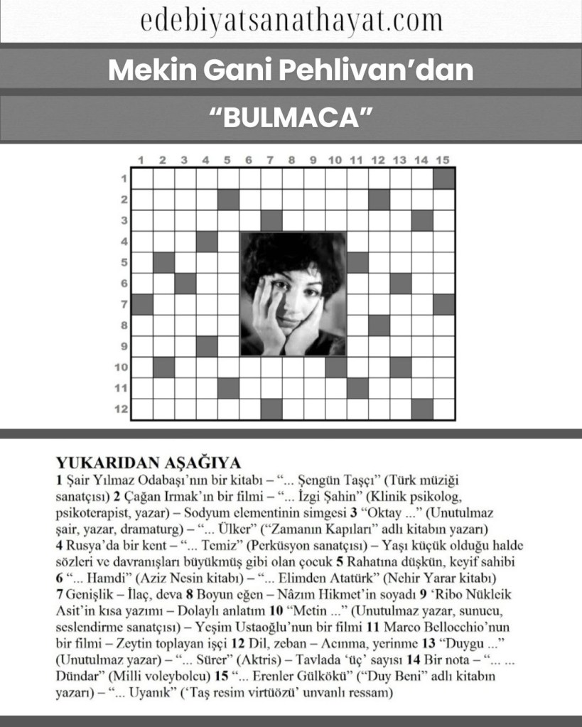 Usta Bulmaca Yazarı Mekin Gani Pehlivan, edebiyatın, sanatın, hayatın içinden eşsiz bulmacalarıyla Edebiyat Sanat Hayat Dergisi’nde.