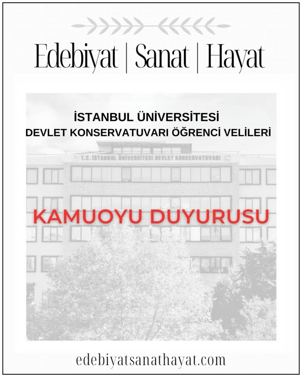 “Bizler İstanbul Üniversitesi Devlet Konservatuvarı öğrencilerinin velileri olarak, sene başından beri ek ders ücreti ödenerek görevlendirilmiş öğretmenlerimizin, İstanbul Üniversitesi Rektörlüğü tarafından Tasarruf Tedbirleri kapsamında 26 Mart 2025 Çarşamba gününden itibaren işten çıkarıldıklarını ve artık derslerine giremeyeceklerini öğrendik.