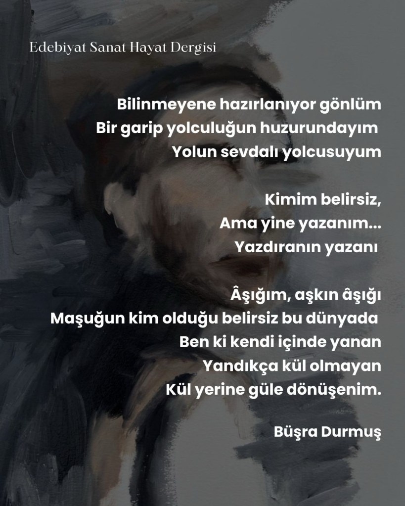 Büşra Durmuş, 2022 yılında Martı Dergisi’nde yazar, sosyal medya yöneticisi ve podcast yayıncısı olarak görev almıştır. Asıl mesleği araştırmacılık ve eğitmenlik olan Durmuş, lisans eğitimine Marmara Üniversitesi Tarih Bölümü’nde devam etmektedir. Tarih alanındaki akademik ilgisini, içerik üreticiliğiyle birleştirerek çeşitli platformlarda tarih temelli yazılar kaleme almış; aynı zamanda edebiyatla da ilgilenmiştir. Edebî üretimleri arasında kısa öyküler, şiirler ve akademik üslupla yazılmış makaleler yer almaktadır.