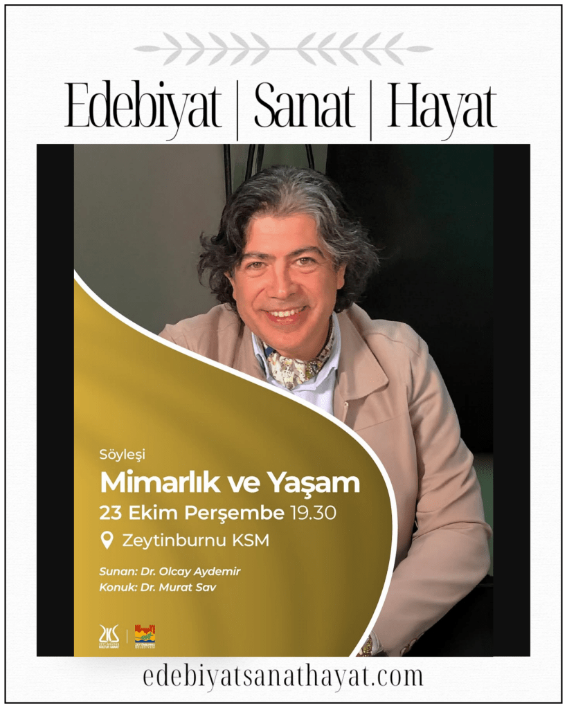 Dr. Olcay Aydemir, İstanbul’da mimarlığın farklı boyutlarını Mimarlık ve Yaşam programında konuklarıyla beraber ele almaya devam ediyor. Ekim ayında, “Restorasyonları Koruma Sorunu” nu konuşmak üzere Arkeolog Dr. Murat Sav konuk olacak. 23 Ekim Perşembe günü, saat 19:30’da Zeytinburnu Kültür ve Sanat Merkezinde yapılacak Mimarlık ve Yaşam programına İstanbul halkı davetli.