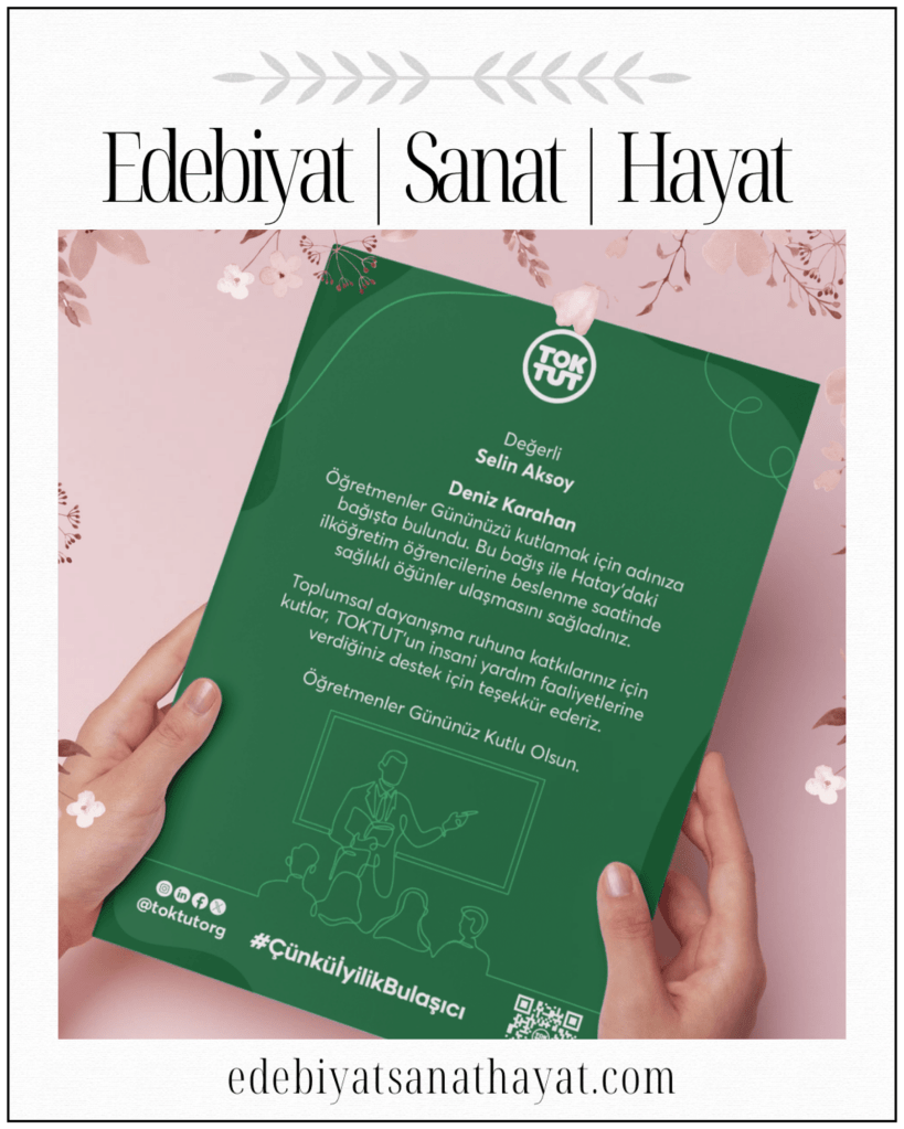 24 Kasım Öğretmenler Günü’ne özel hazırlanan, öğretmenlerin ismine yazılı bağış sertifikaları, Hatay’daki ilkokul öğrencilerine okul yemeği ulaştırılmasını sağlıyor. Her bir sertifika, bir öğrencinin haftalık beslenme öğününü karşılayarak çocukların ders sırasında sağlıklı şekilde beslenmesine ve eğitim başarılarına katkıda bulunuyor.