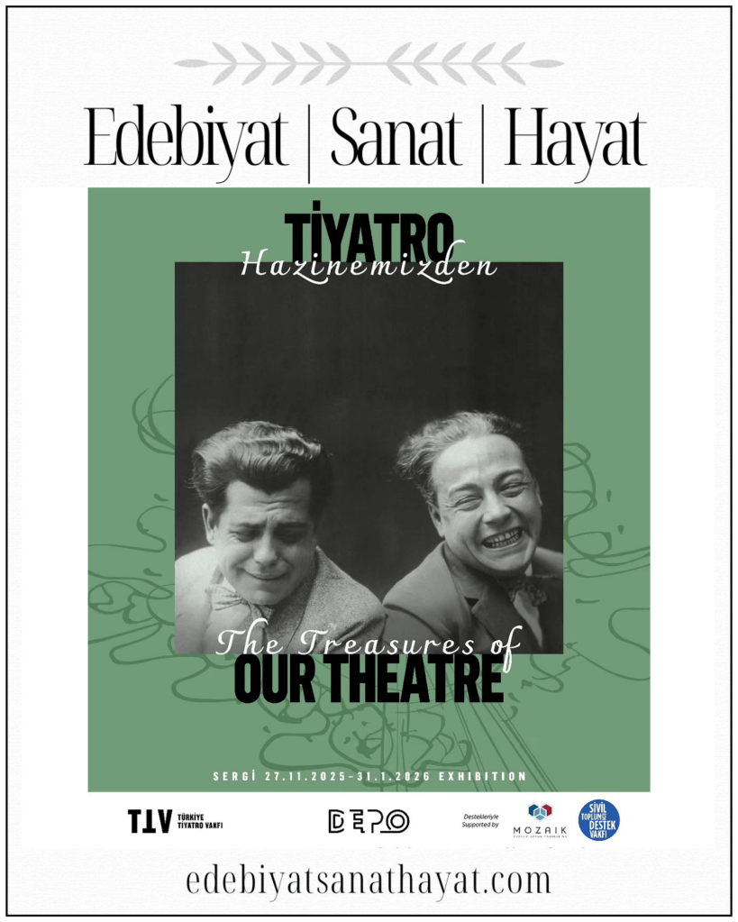 Türkiye Tiyatro Vakfı (TTV), tiyatro tarihimizin izlerini süren özel bir sergiyle izleyicileri buluşturuyor. TTV öncülüğünde Sivil Toplum için Destek Vakfı (STDV) ve Türkiye Mozaik Foundation katkılarıyla hayata geçirilen arşiv sergisi Tiyatro Hazinemizden 27 Kasım 2025 – 31 Ocak 2026 tarihleri arasında Depo’da ziyaret edilebilecek. Küratörlüğünü vakfın kurucu başkanı Esen Çamurdan’ın, yardımcı küratörlüğünü Aylin Erkan ve Ceren Uyan’ın, tasarımını Sera Dink’in üstlendiği sergi, tiyatronun sadece sahnede değil; anılarda, belgelerde ve geçmişten bugüne taşınan anlatılarda da yaşayabileceğini gösteriyor.