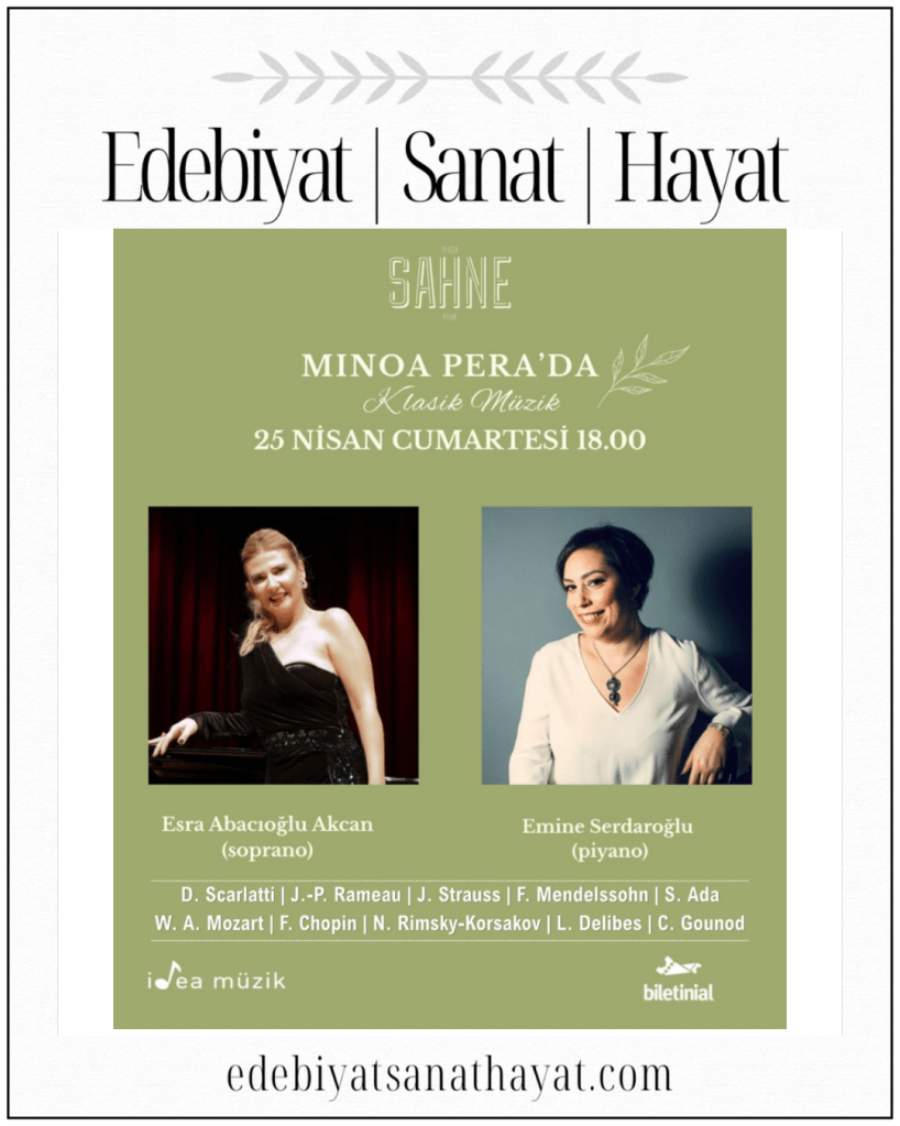 İstanbul’un kültür-sanat duraklarından Minoa Pera, özel bir konsere ev sahipliği yapıyor. “Klasik Müzik Günleri” kapsamında düzenlenen konserde, sanatseverler baharın ruhunu taşıyan seçkin bir repertuvarla buluşacak.